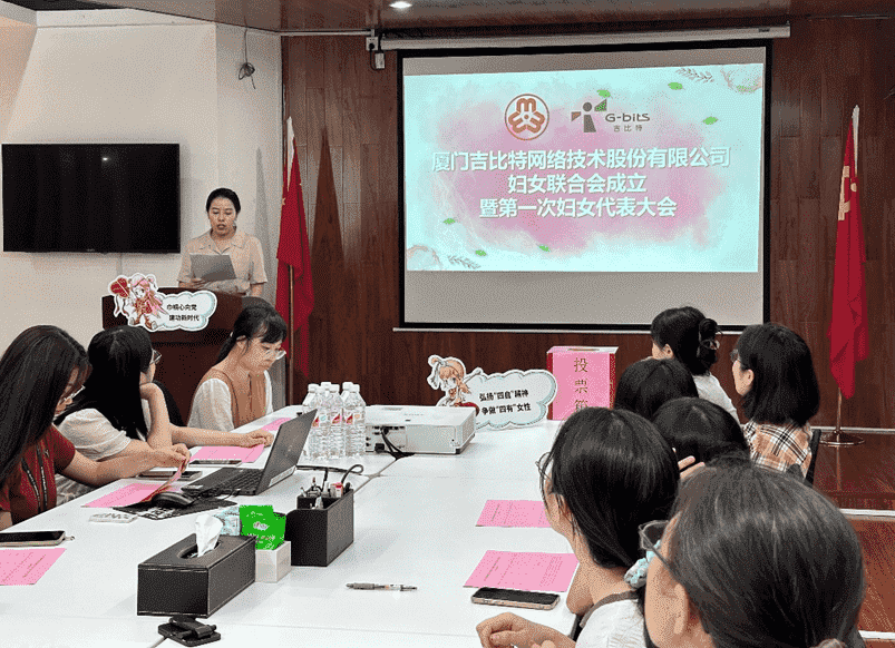 8月12日,,,在廈門市婦聯、、、、思明區婦聯的指導下,,廈門一競技網絡技術股份有限公司婦女聯合會成立暨第一次婦女代表大會順利召開。。會議選舉產生了第一屆執行委員會委員7名,,,,其中主席1名,,,,副主席2名。。。