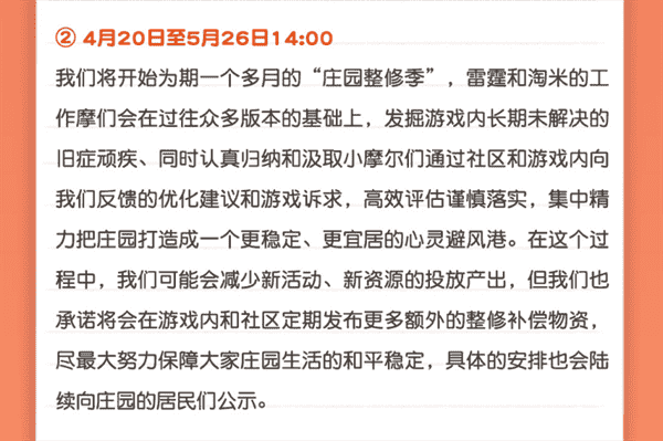 合作的結(jié)束并不意味著這個(gè)童年IP的結(jié)束,,,對于《摩爾莊園》手游而言,,,這是一個(gè)新階段的開始。。后續(xù)游戲內(nèi)將開啟莊園重構(gòu)計(jì)劃,,會(huì)就以往遺留下來的BUG進(jìn)行集中修復(fù),,,并在游戲內(nèi)和社區(qū)定期發(fā)布更多補(bǔ)償物資。。。