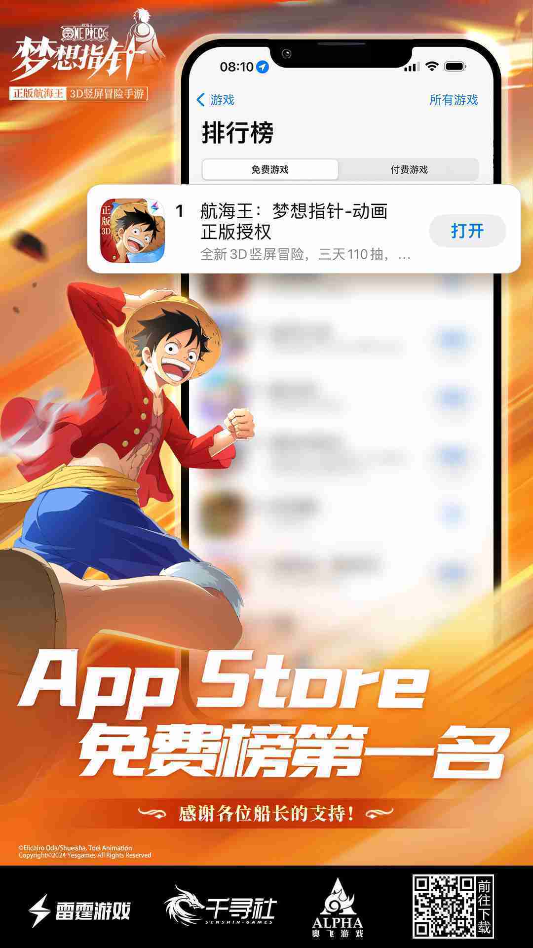 《航海王::夢想指針》登頂App Store免費榜,,公測福利匯總??!