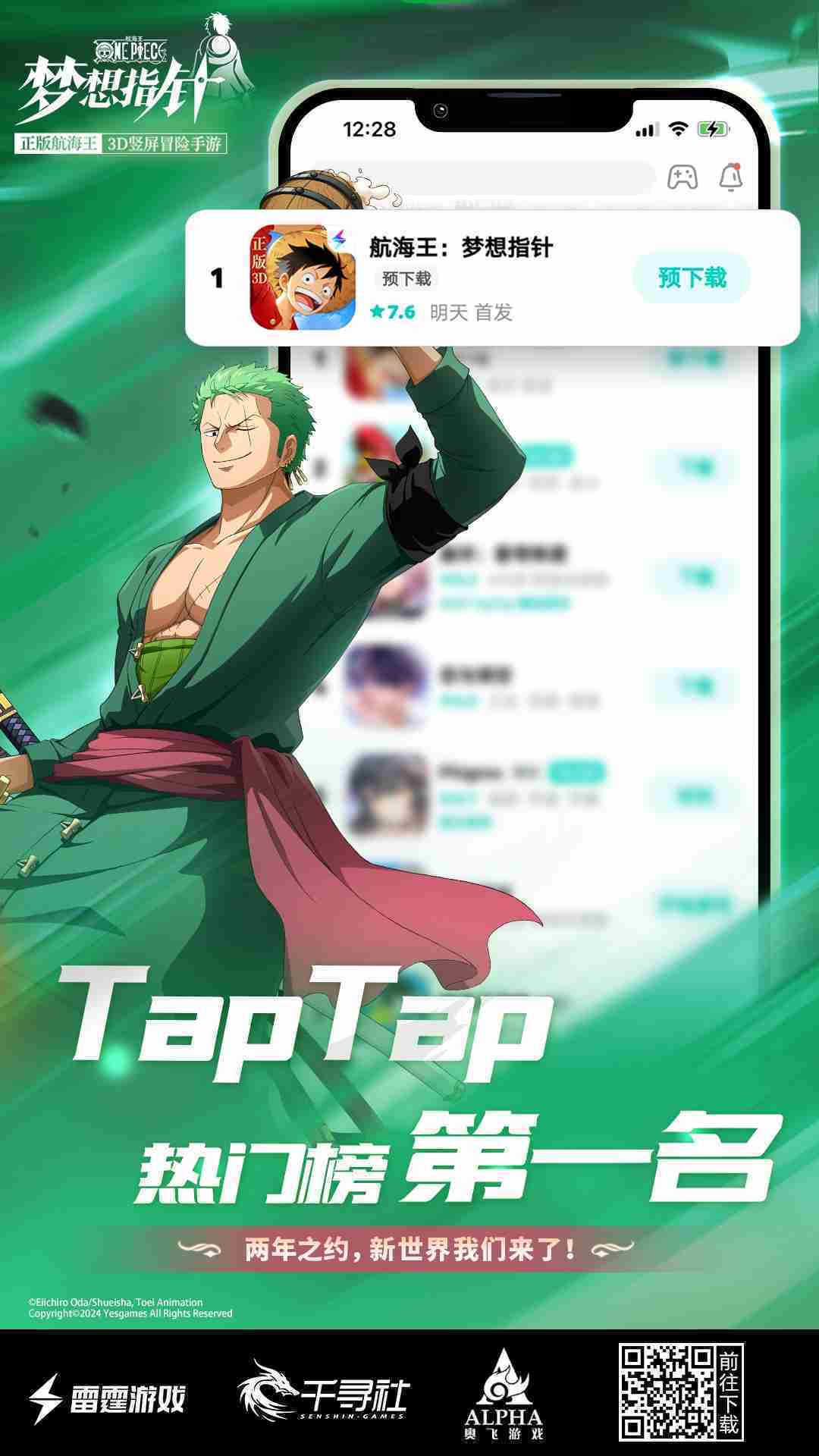 4月1日,,,,手游《航海王::夢想指針》正式公測,,,,上線僅2小時不到就登上了App Store免費榜Top1,,,與TapTap熱門榜第一。。。。